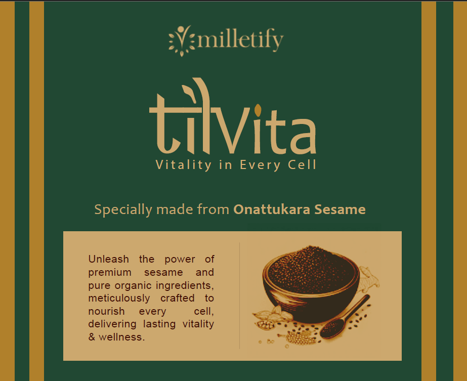 A premium functional food blend, combining Onattukara sesame and pure organic ingredients, meticulously crafted to nourish every cell for lasting vitality and wellness.